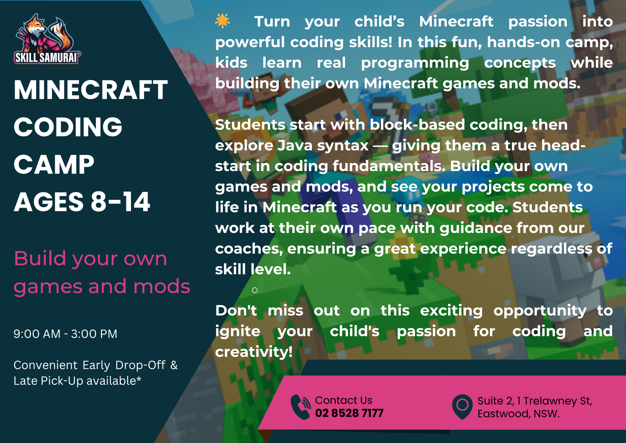 “My son attends this coding centre and joined the Minecraft Coding Camp today and he absolutely loved it! He had so much fun and came home every day even more interested in coding. The teachers were kind, supportive, and truly passionate about teaching. Thanks to their great guidance, he’s now excited to learn more about coding. We’ll definitely be signing up for the next camp!” - Claire An